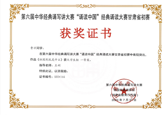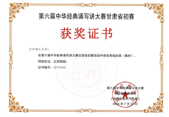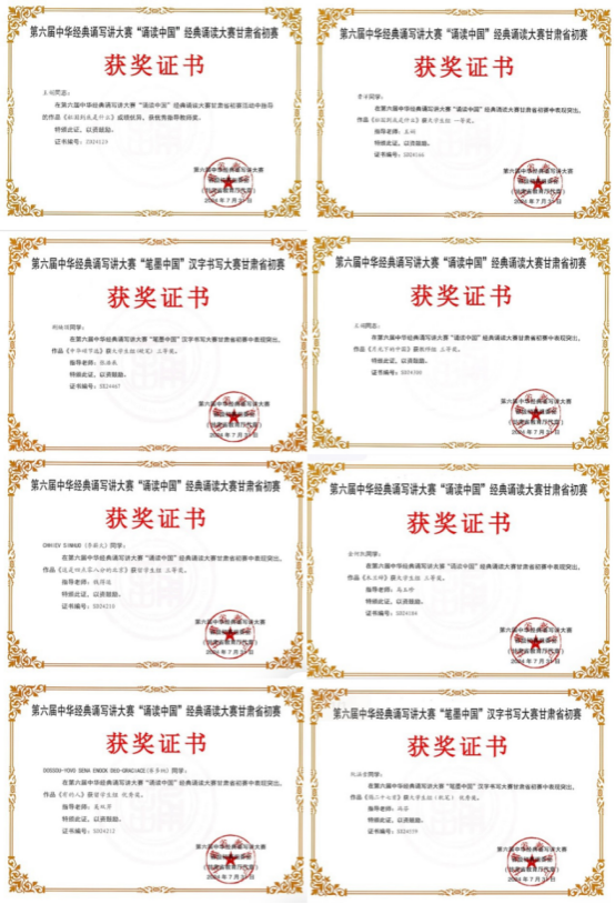 在学校领导和校语委的鼎力支持下,英国上市公司365在第六届中华经典诵写讲大赛中取得了优异成绩,荣获“第六届中华经典诵写讲大赛省级优秀组织(集体)奖”。充分展示了师生深厚的文化素养和卓越的艺术表现力。